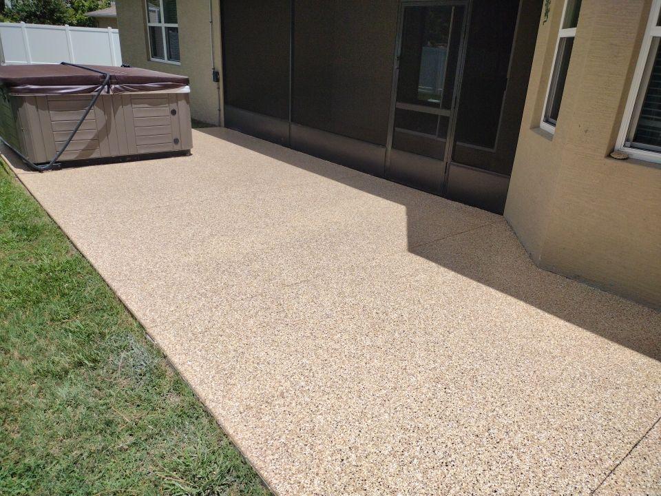 Bring your patio back to life with a beautiful concrete coating that is easy to maintain and looks amazing all year round!